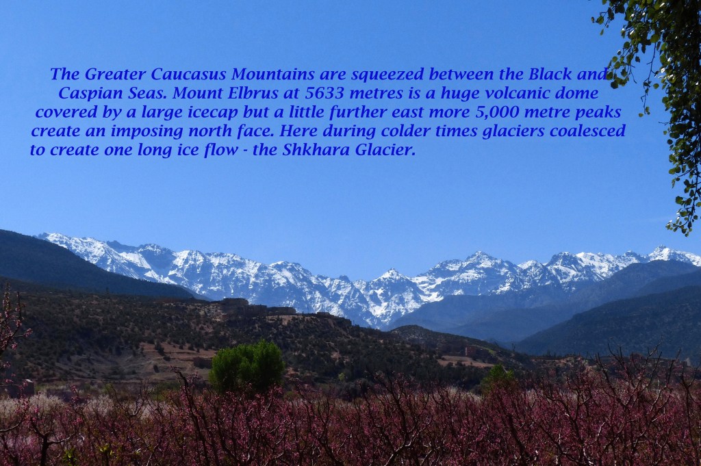 The Greater Caucasus forms a barrier which traverses this neck of land and affects the weather and climate of the whole region. The north side of the range is exposed to icy winds from the northeast while to the south the mountains offer some protection from this chilling cold. The Lesser Caucasus meanwhile create an east west barrier to moisture coming in from the west over the Black Sea. This barrier extends north to include the highest mountains of not just the Greater Caucasus but the whole of Europe. Together these two ranges of mountains create a rain shadow to the east along the Caspian Sea coast of Azerbaijan and extending north.